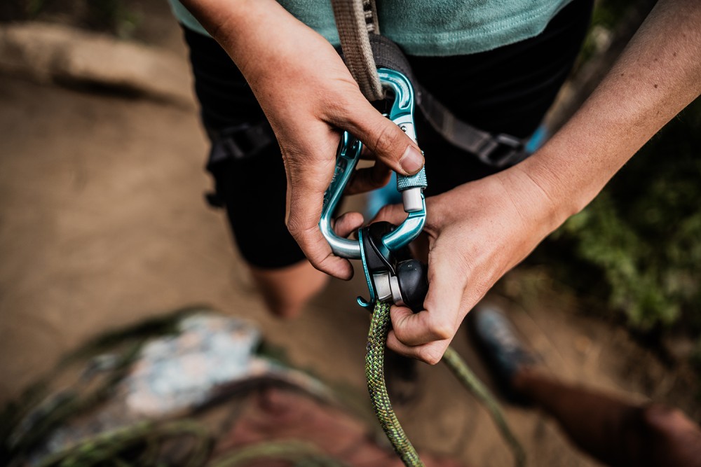 Rappelling down from a 600-foot climb, we met up with the guys we’d seen with the colorful patches on their climbing pants. The one with a scraggly beard stopped rappelling long enough to give us some beta (climbing slang for advice) on the route. “It’s a hard right,” he said. “You traverse across that ledge and then place gear in the crack above.” He asked us our names and then offered his, told us to look him up if we were ever in the Gunks, a climbing area in upstate New York. No outsiders, just fellow trad climbers.