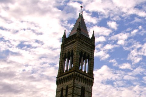 minutes before the prelude begins, he climbs up into our soaring, Gothic tower...