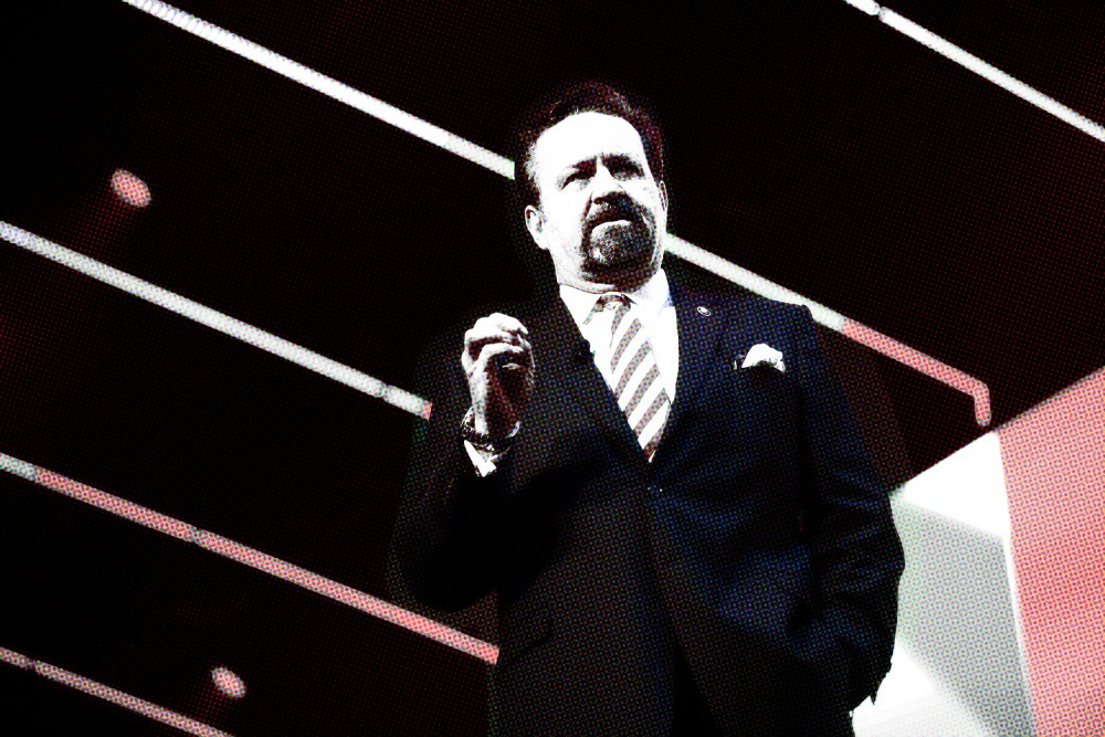Sebastian Gorka, the senior director for counterterrorism for the White House National Security Council, is regaling a sparse audience at February’s Conservative Political Action Conference with a story of what it’s really like to work for President Trump. His signature goatee and booming Mitteleuropean accent punctuate his performance as the pompous blowhard; his we’re-all-in-on-the-joke tone makes him one of the few Trump surrogates to truly follow the master.