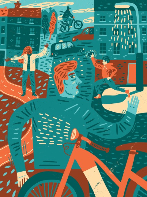 But then two extraordinary things happened. As I uselessly made middle-aged plodding chase, a woman 50 yards away, who’d somehow seen the incident, faced the thief’s bike, made herself wide like a star, stood in his way and shouted, “Stop it and drop it!” I was so dazed I scarcely realized what was happening. But when I turned around, a small boy was running toward me with my phone. I received it dumbfounded and dazed, like an audience taking back the ace of spades during a card trick. I thanked the boy, shaking his palm with my still-trembling hand. Only then did I realize that the cyclist had dropped the phone just as the woman had told him to. I looked around to thank her, but she was gone. The whole event took 20 seconds.