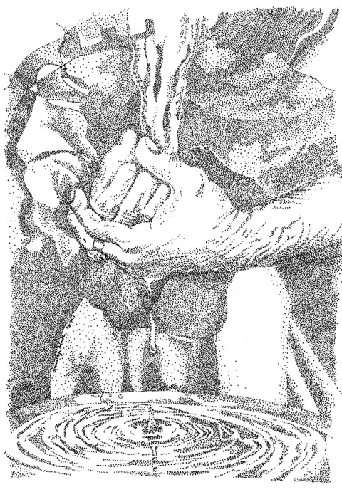 The gospel story of Jesus before Pilate has echoed down the centuries in numerous accounts of rulers and public officials who engage in wrongdoing and pass the blame to others. The Roman governor’s gesture of washing his hands has become synonymous with moral cowardice and the evasion of responsibility. In this vivid monochrome drawing, Nigerian artist and illustrator Oluwaseyi Alade emphasizes the timeless dimension of Pilate’s infamous act by omitting clues about where and when.