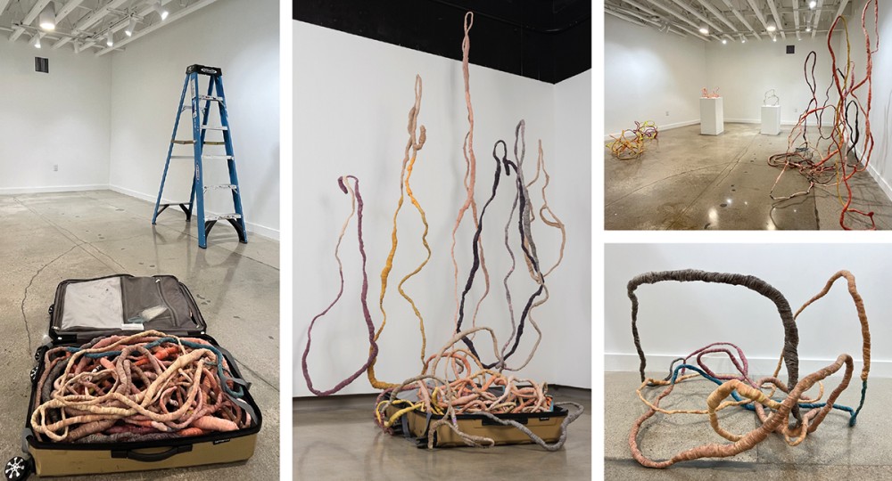 Thus, What Upholds Us invites a type of spiritual seeing negotiated through nature and handiwork. The art obliges a reexamination of spatial, temporal, and social discrepancies to grasp what upholds us. Seeing gains seeds of divine wisdom deeply deposited in earthly matters. The artist’s flexible pieces also impart the value of malleability for transformation. As Hong Chandra regularly travels between Malaysia and the United States, the art complies with the perimeters of a suitcase. Through art, chaos is grasped, modulated by rhythms of making and then packing, exhibiting, and repacking.